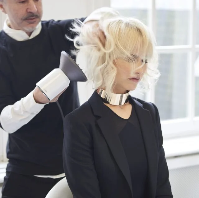 Bij de Dyson Supersonic haardroger worden drie opzetstukken geleverd. Otjes demonstreert de Styling Concentrator – een een smalle sleuf waarmee tegelijkertijd gedroogd en gestyled kan worden. Otjes: “Ik hou niet van gekapt haar, maar ‘gepolijst’ haar vind ik wel erg mooi en daarvoor gebruik ik dit tweede opzetstuk, de Smoothing Nozzle die het haar ook mooi glad maakt.”