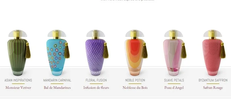 De eigentijdse Murano collectie van The Merchant of Venice bestaat uit zes parfums waaronder de rozengeur Suave Petals, Byzantium Saffron met saffraan en Flower Fusion met viooltjes uit de Franse Provence. Mijn favoriet is de verfrissende citrusgeur Mandarin Carnival met bergamot en mandarijn in een blauwe flacon, een hint naar de zee van Sicilië.