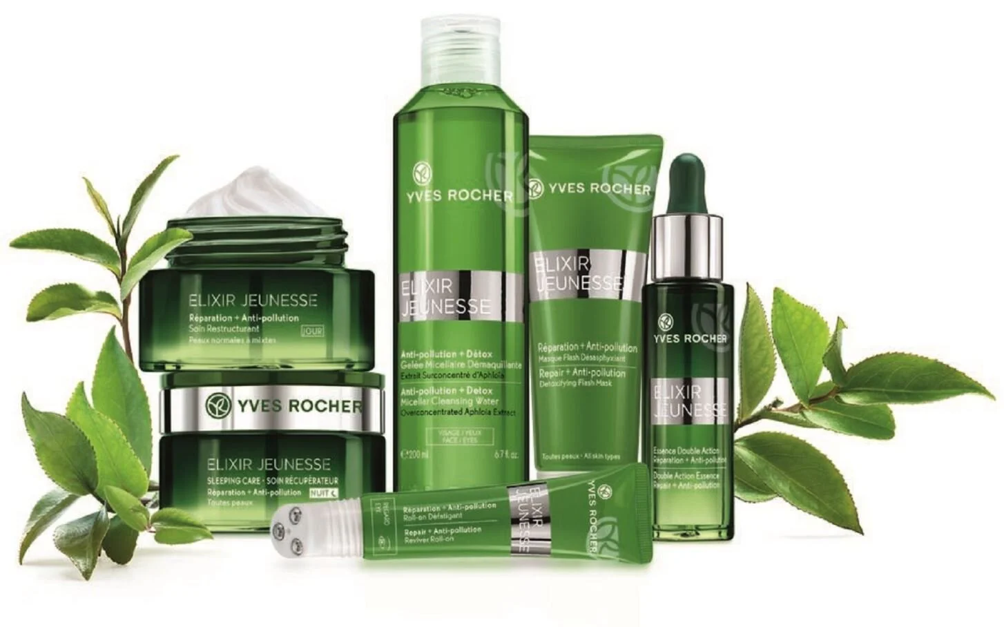 Steeds meer skincare merken komen daarom met gerichte detox producten zoals Clinique. Clarins heeft zelfs in al zijn dagverzorgingsproducten een Anti-Pollution Complex dat de huid beschermt tegen luchtvervuiling. Het meer betaalbare Yves Roches lanceerde onlangs de vernieuwde Elixer Jeunesse-lijn met een vijftal producten waaronder een dag- en nacht crème en een verfijnd serum voor een milieu-proof huidje. Elixer Jeunesse belooft de huid te herstellen en te beschermen tegen de schadelijke effecten van vervuiling.