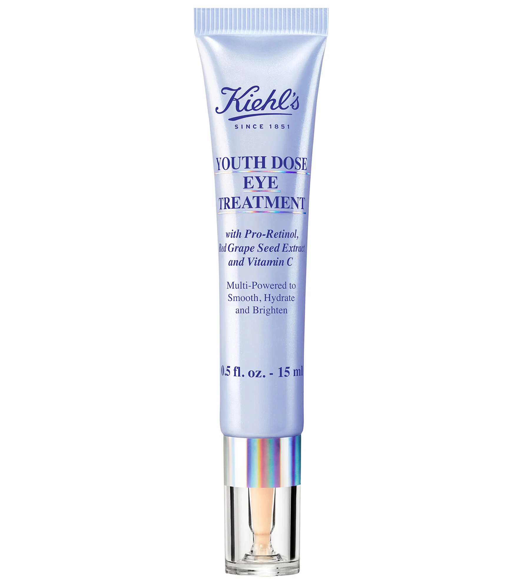 Product nummer 2 is het nieuwe Youth Dose Eye Treatment van Kiehl’s met pro-retinol, rode gember en vitamine C. Ook deze crème is wederom licht getint, smeer het onder je ogen, en je verdoezelt in een handomdraai donkere kringen onder je ogen.