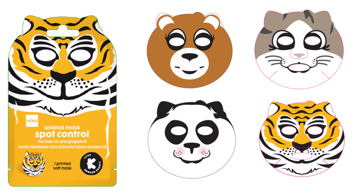 Sheet masks zijn daarvoor een middel en gemakkelijk in gebruik. HEMA Beauty introduceert dieren-, klei-, peel off & beauty sleep maskers voor een frisse en dewy uitstraling. Er zijn vier panda-, beer-, kat- en tijgervormige dieren sheet masks. Very instagrammable en vanaf €2,50 per stuk. Te koop vanaf 26 november, ideaal voor in de schoen (Sinterklaas!).