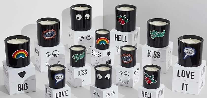 Deze winter maakt de Britse sfeer in huis met Anya Smells, een opvallende geurlijn met een grappige twist. Net als Hindmarch gewilde tassen zijn de kaarsen versierd met een luxe sticker van bijvoorbeeld een stel olijke kersen genaamd Candle Lip Balm. Qua geur kun je wat betreft deze kaarsen rekenen op kwaliteit en originaliteit. Zo ruikt de Candle Lip Balm werkelijk niet alleen naar kers maar ook naar het vruchtvlees van de pruim, granaatappelzaden en jasmijn. De ingredientenlijst vermeld verder Iris uit Florence, roos, Franse vanille, tonkaboon en muskus. Kortom dit is een weelderige fruitige geur, eentje om van te smullen.