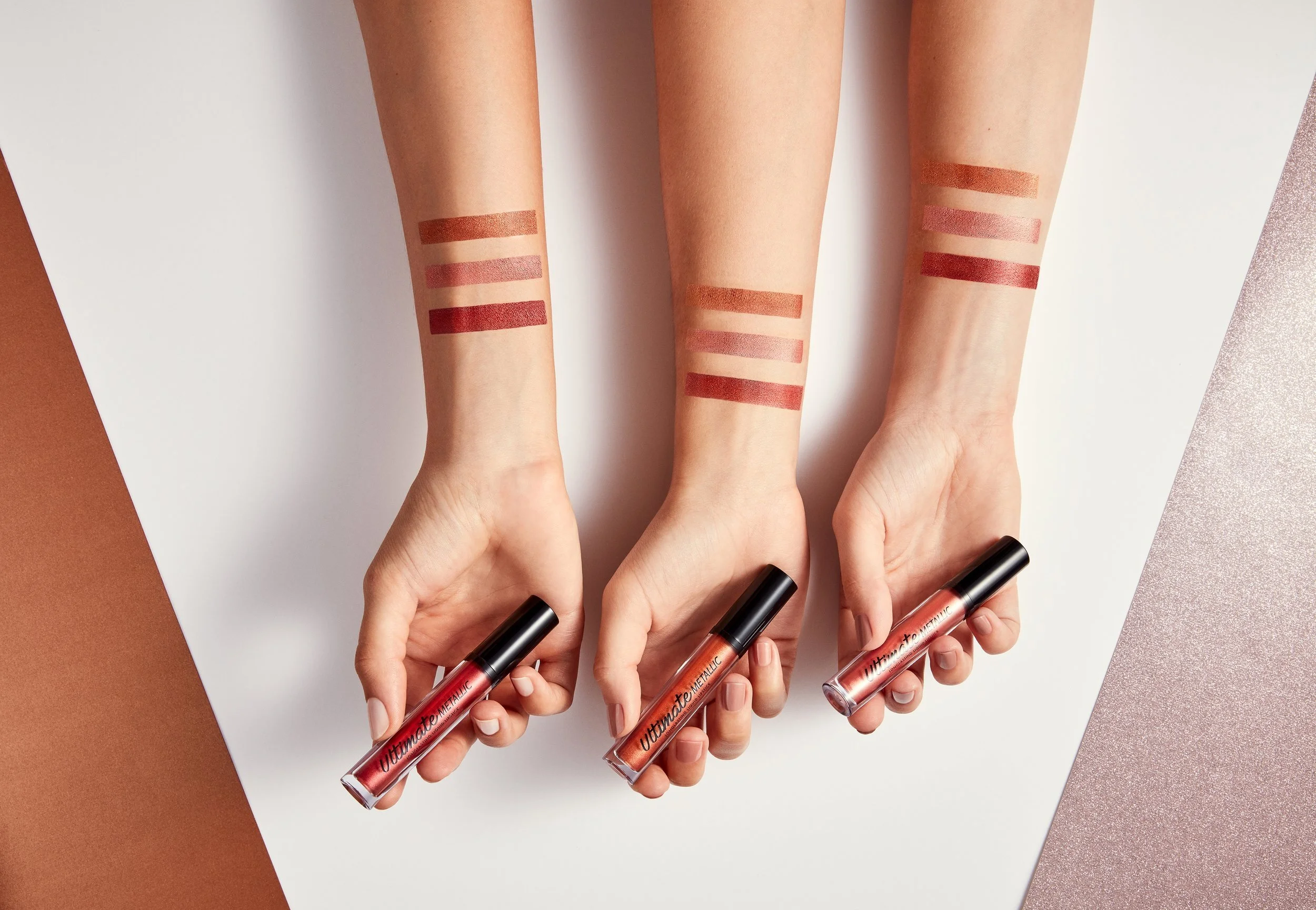 Dankzij de gewichtloze formule draagt deze lipstick comfortabel, de uitstraling is een krachtige metallic look. Er zijn nu drie nieuwe long-lasting kleuren toegevoegd aan de limited Douglas Ultimate Liquid Lipsticks Metallic collectie. Gold, Rosy-Nude en Copper.