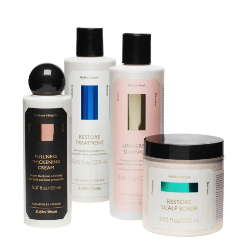 & Other Stories Los Angelos Atelier. Beschikbaar in de winkels & via stories.com. Melrose Heights Fullness Thickening Cream €15. Restore Hair Serum €17. Venice Blvd Universal Blowout Lotion €15