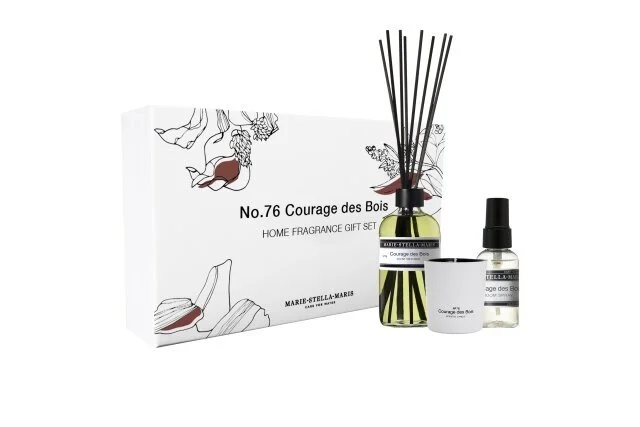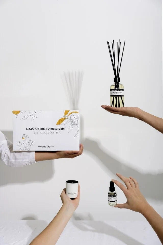 De subtiel geïllustreerde Home Fragrance Gift Sets zijn er in 2 varianten. Het warme No.76 Courage des Bois is een lichtrokerige klassieker met gerustsellende ingrediënten als sandelhout en patchoeli. De frisse tegenhanger is No.92 Objects d’Amsterdam met sprankelende citrusnoten en groene thee maar ook met amber en musk voor het geborgen gevoel.