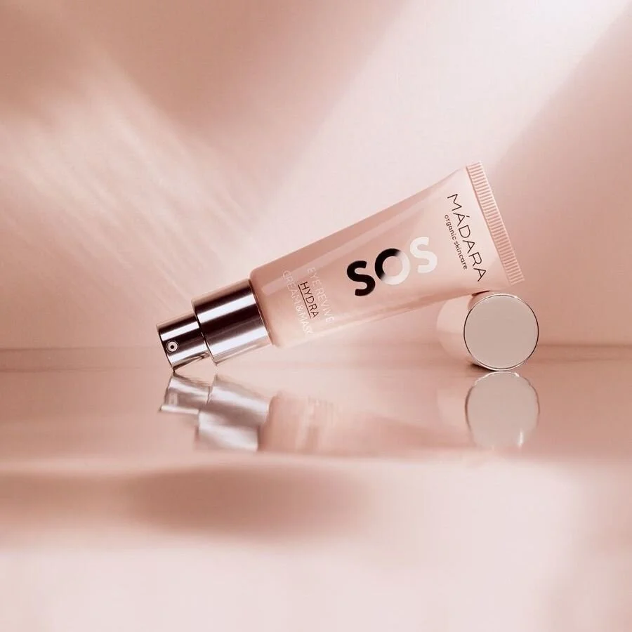 Het Sos Eye Revive Hydra Cream & Masker is een van de twee nieuwe oogproducten van Mádara Organic Skincare op basis van het wetenschappelijk ontwikkelde en klinisch bewezen EyeBright Periocular Compex, met …ogentroost. Het is één van de 6 natuurlijke ingrediënten tegen huidveroudering, irritatie, droogheid, vochtophoping en donkere kringen.