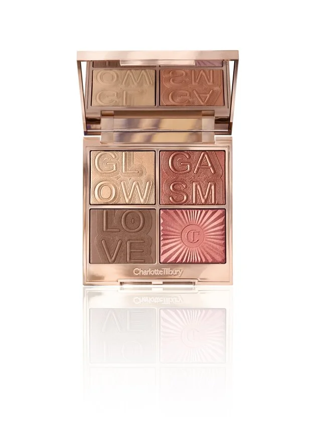 Het Glowgasm Face Palette is een nieuw make-up palette van Charlotte Tilbury uit de Glamgasm Collection. The Britse Queen of Glow (ze vond glow zo’n beejte uit!) verrast met een glansrijk palette met twee lichte tinten, één blush en één bronzer. Volgens Tilbury is dit hét palette dat deze zomer alle anderen overbodig maakt. Het is uitgebracht in twee varianten: Lovegasm voor midden donkere tot donkere huidtinten en Lightgasm is bedacht voor lichtere huidtinten.