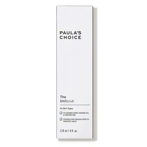 Paula’s Choice claimt dat The Unscrub zware make-up verwijdert, en dat het de zachtste, meest effectieve scrub is voor alle huidtypes. Het is ook geschikt voor zonnebrand en onzuiverheden. De mildheid van dit product komt doordat de huid voorzichtig wordt gepolijst met natuurlijke, biologisch afbreekbare jojoba-bolletjes. Deze drukgevoelige bolletjes lossen langzaam op tijdens het reinigen, waardoor het onmogelijk wordt om de huid te beschadigen.