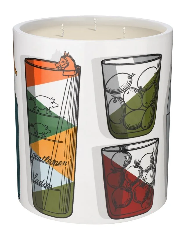 De kleurige geïllustreerde geurkaars met fifties twist, is geïnspireerd op een ijsemmer-ontwerp van Fornasetti genaamd: Oggetti Cocktail. Het Milanese Fornasetti is een familiebedrijf, internationaal geroemd, en opgericht in de jaren vijftig door de creatieve Piero Fornasetti. Elk Fornasetti-object – van geurkaars, interieuraccessoire tot meubel - balanceert op de grens van design en kunst. Fornasetti’s atelier wordt tegenwoordig geleid door Barnaba Fornasetti.