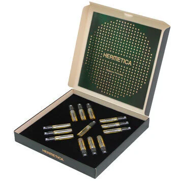 De Hermetica-lijn bestaat uit 13 aantrekkelijke geuren onderverdeeld in vier collecties: bloemig, groen, houtachtig en oriëntaals. De basisgeur is zoals gezegd Source1 en kan ook afzonderlijk worden gedragen. Na het ruiken van het hart, verrassen de parfumeurs Philippe Paparella en Aliénor Massenet met andere lagen.