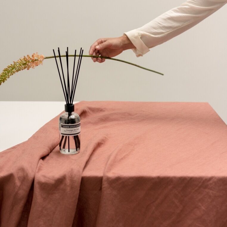 Marie-Stella-Maris. Geurlijn Courage des Bois, roomspray 240ml €39, geurstokjes 240ml €39, twee formaten geurkaars à 70 gram €19 en 220 gram €39. Via Marie-Stella-Maris.com en de Marie-Stella-Maris Store aan de Amsterdamse Keizersgracht 357, en Skins Cosmetics en de Bijenkorf