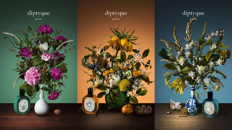Op parfumgebied gingen de Fransen onlangs een samenwerking aan met Bas Meeuws. De Nederlander vertaalde verschillende geursensaties van onder ander Eau de Sens en Ombre dans L’Eau (100ml €108) naar schitterende bloemstilleven fotografie die de verpakkingen siert.