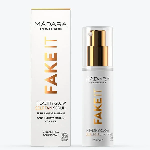 ’S Avonds naar bed met een bleek snuitje, ’s morgen opstaan met een subtiel gebruind gezicht met zelfs een sprankeltje glow. Organic skin care merk Mádara maakt het mogelijk met Fake It.