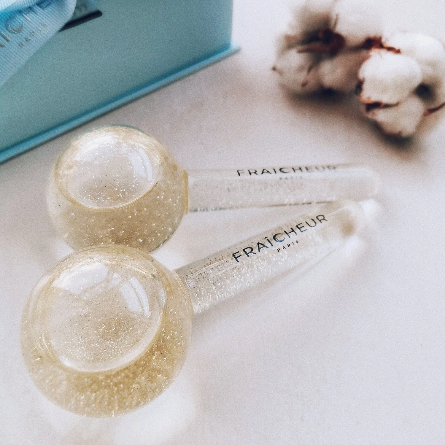 Twee ballen met water op een stokje. De MIIRROR MIRROR redactie had dit nog nooit eerder gezien. Het Franse merk Fraîcheur Paris lanceerde in 2018 de Ice Globes Collection.
