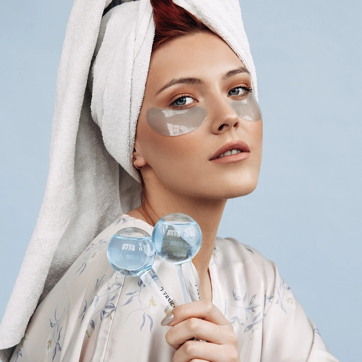 Ice Globes gebruik je bijvoorkeur ’s morgen, ze helpen tegen roodheid en zwellingen. Breng voor het gebruik iets van olie op je gezicht, dan ‘rollen’ ze optimaal over je huid. Check de site voor de juiste bewegingstechniek. Je kan kiezen tussen een eenvoudige Lymphatice massage tegen zwellingen en een Skin Lifting massage voor een glowy, strakke huid.