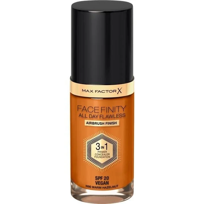 De hele dag een mooie teint met de Max Factor Facefinity All Day Flawless 3-in-1 Foundation met Airbrush Finish. Deze vegan foundation is een primer, concealer en foundation in één en beschikt over een SPF 20.