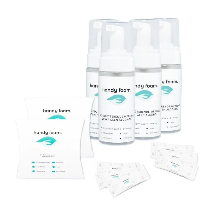 Het afgelopen jaar verschenen ontelbare nieuwe desinfecterend middelen voor onze handen. Maar wat gebeurt er met al die lege tubes en flacons vroeg Handy Foam zich af. Handy Foam maakt het ons makkelijk met een refill in poedervorm. Plus: de formule van de foam is vrij van alcohol, 100% natuurlijk en vegan.