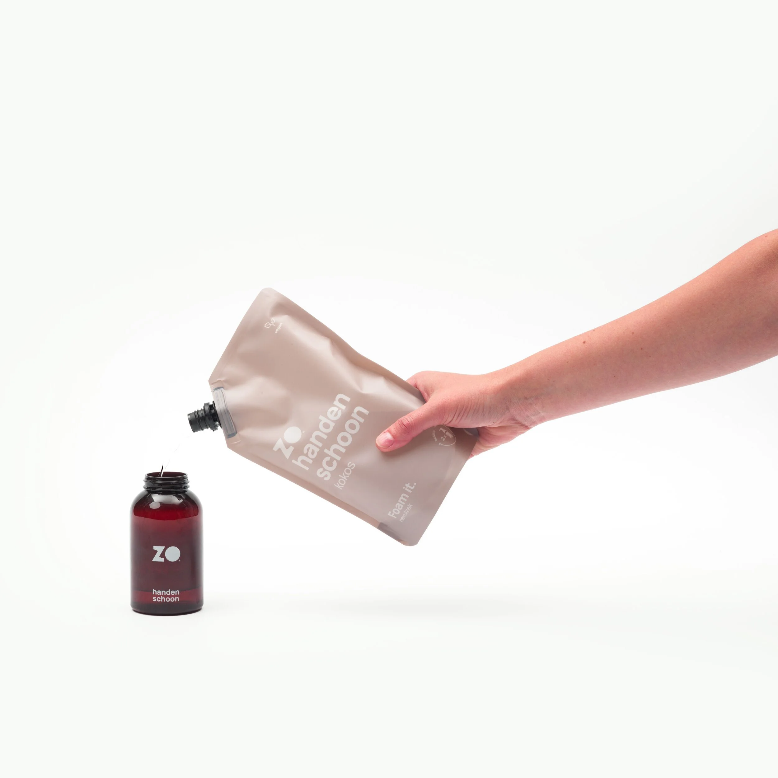 ZO benadrukt graag dat het écht duurzaam is. Het merk let niet alleen op het gebruik van materialen en ingrediënten, ZO is duurzaam vanaf de productie tot en met het gebruik. Alles zit of komt in een cirkel van recycling. Daarom heeft ZO géén afval. De ZO Handen Schoon verpakking - een foamer - is navulbaar met een bijgeleverde navulzak.