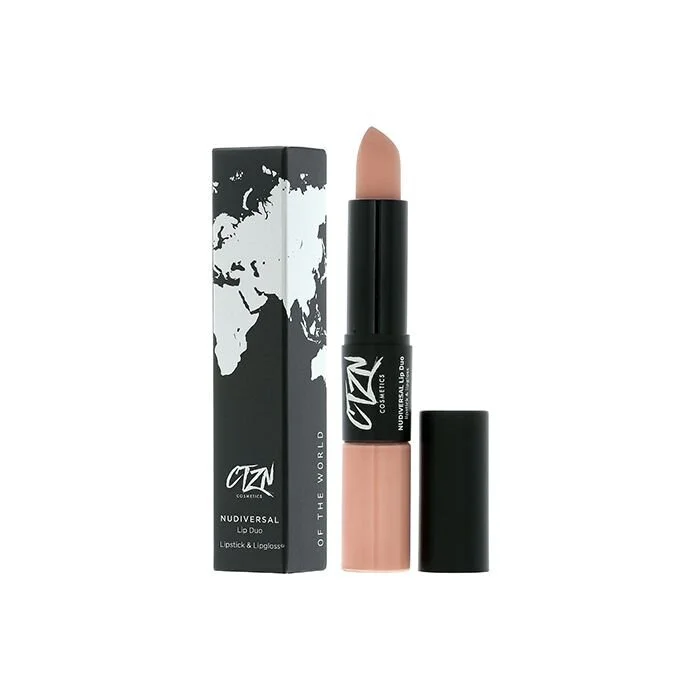 CTZN Cosmetics Nudiversal lip duo, €25, CTZN Cosmetics Globalm, €20, CTZN Cosmetics long lasting Lipstroke, €17. Verkrijgbaar bij cosmania.nl hebeautyeditor.com Douglas.nl parfumerieën en via ctzncosmetics.com