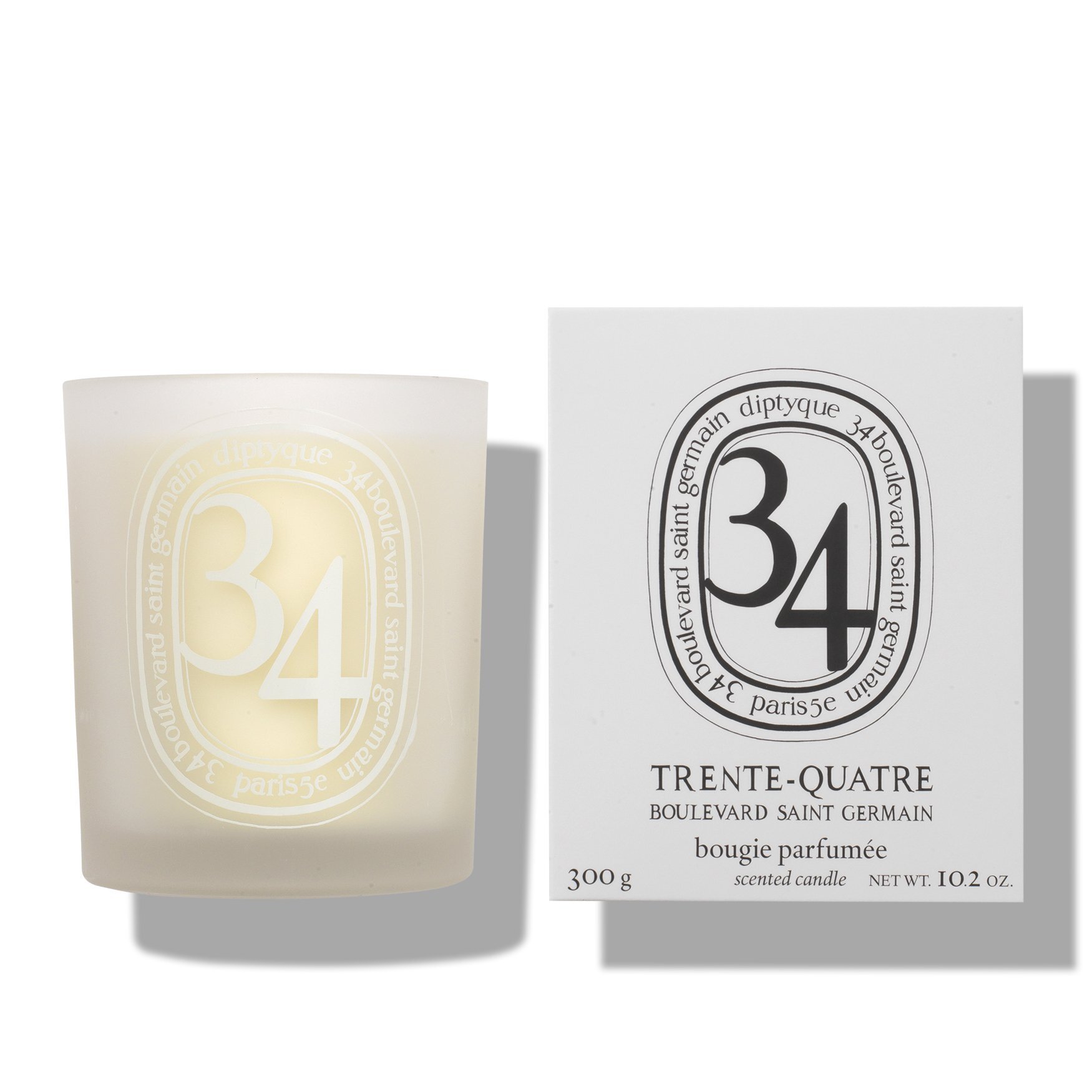 34 Boulevard Saint Germain in Parijs is niet alleen het adres waar het Franse diptyque zich in 1961 in een hoekpand vestigde, en dat nog steeds een van de beste geurbestemmingen is. Het adres siert ook verschillende producten uit de populaire Trente-Quatre-lijn met onder andere een luxe eau de parfum, eau de toilette, roomspray, geurstokjes maar ook heerlijke geurkaarsen. De 34-kaars ruikt naar frisse bloemige noten, aards mos en zwarte bessenbladeren. Het is beslist geen zware geur, maar een heerlijk verfijnd huisbriesje.