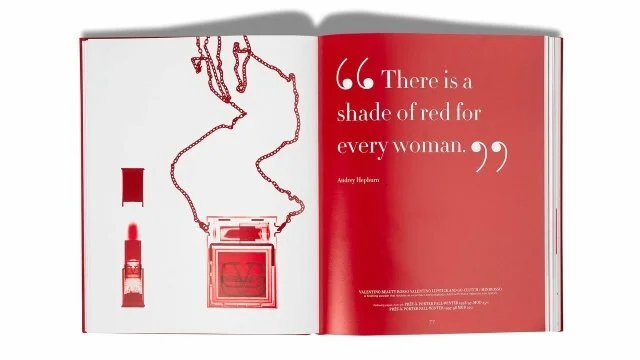 Maar hoe vang je Valentino’s glamour couture-spirit in een boek? Van zo’n boek moet de luxe afspatten, het moet groot en natuurlijk rood zijn! De titel:Valentino Rosso. Dit heerlijke koffietafelboek is de laatste aanwinst uit de Legends Collection van Assouline. Samensteller en schrijver Charlie Porter dook in de archieven en spitte door 50 jaar Valentino. Het boek bevat 180 Maison Valentino jurken in vlammend rood in allerlei stijlen en knalrode accessoires waaronder de bekende slingback schoenen versierd met de typerende Valentino zilveren rockstuds.