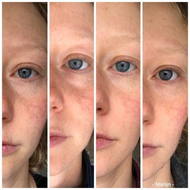 “Na 4 weken was ik eigenlijk niet van plan om weer opnieuw een pot te bestellen, omdat ik in de spiegel geen verschil zag. Maar toen ik complimenten over mijn huid kreeg, en de wekelijkse foto’s naast elkaar zette, zag ik wel degelijk verschil!