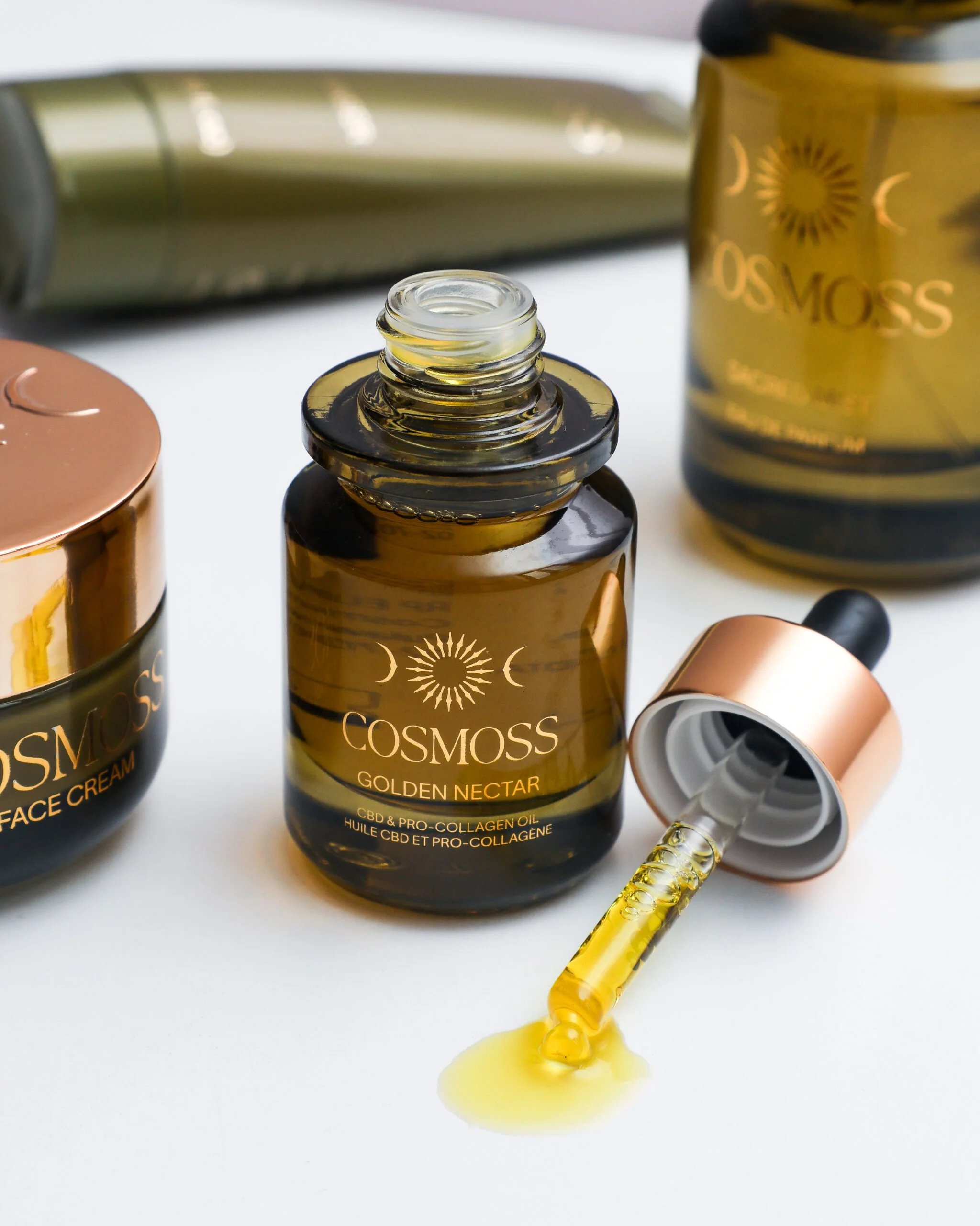 Op de bescheiden en stijlvolle site Cosmossbykatemoss.com deelt Kate haar dagelijkse beauty-ritueel producten – The Dawn Ritual - met Golden Nectar, een CBD-olie (€120), het parfum Sacred Mist (€140) en een dagcrème met planten uit IJsland (€110). Kate gaat in alles wat ze doet voor een holistische aanpak, een lekker kopje rustgevende thee uit haar eigen wellness-lijn (€24) hoort hier ook bij. Ja dit is dezelfde Kate Moss die rookt als een ketter en werkte voor Diet Coke. Maar hé het is wel de enige echte La Moss!