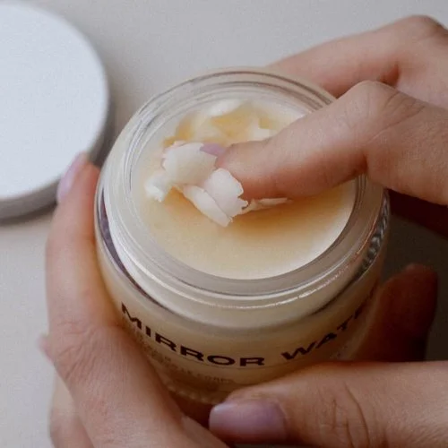 De Rub Solid Balm van Mirror Water is een bodybalm met sheabutter en bevat etherische oliën van vetiver, cederhout en bergamot die samen een aardende en troostende geur vormen. De balsem kan over het hele lichaam gebruikt worden, ook op droge plekken die extra verzorging nodig hebben zoals ellebogen, voeten en nagelriemen. De rijke balsemtextuur wordt een romige olie bij het aanbrengen op de huid en kan daarom ook al massagebalsem worden gebruikt. De Rub Solid Balm bevat meer dan 70% sheabutter. De combinatie van vetzuren en vitamine A en E verzachten een droge huid en beschermen de huidbarrière.