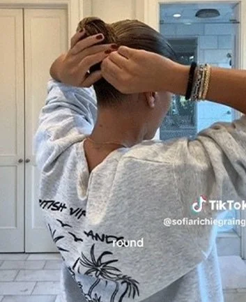 Stap 3: Borstel de twee voorste delen naar achteren en voeg ze toe aan je paardenstaart. Draai je paardenstaart rond totdat je uiteindelijk een knot hebt. Deze zet je vast met een elastiekje en voilà! Zo heb jij de chique sleek bun van Sofia Richie Grainge in een handomdraai.