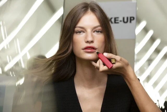Lucia Pica is Chanel’s global creative make-up & color designer. Voor de Chanel ready-to-wear show voor zomer 2020 maakte ze alle modellenmonden op met het innovatieve Rouge Allure Liquid Powder, een vloeibare ‘lipstick’ voor nonchalante lippen met een prachtige blurry effect. “Wat ik wilde overbrengen is het idee van een meisje dat net een aardbei heeft gegeten.”
