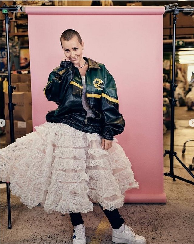 Een dag eerder zag ik op Instagram een fotoshoot van Marc de Groot (ook zijn werk staat nu in MIRROR MIRROR) van de recalcitrante zangeres. Op drie vrolijke foto’s - geschoten in de enorme opslaghal van tweedehands gigant Zipper - droeg de aanstaande mevrouw Schemmekes een drietal interessante vintage looks: een kitscherige eighties jurk gecombineerd met een satijnen baseballjack, een mouwloos spijkerjack vol buttons over een zalmkleurige strapless tulle jurk.