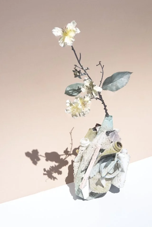Toen Schaap ruim tien jaar geleden begon met het jutten van afval, had ze nog nooit gehoord van het verschijnsel ‘the great garbage patch’, het afval dat zich verzamelt in de Grote Oceaan. Aanvankelijk raapte ze tijdens strandwandelingen rommel op en gooide het in een recyclebak. ‘Sommige dingen die ik mooi van lelijkheid vond, nam ik mee. Zoals slierten zeewier waarin een plastic zak zat verweven. Of plasticflessen verkleurd door de zon en aangetast door zout water, soms zaten er dingetjes opgegroeid. Ik nam het mee en keek ernaar op rustige momenten. In het begin maakte ik sculpturen van bijvoorbeeld aan stukken gereten plastic flessen, verscheurd alsof ze door een haai waren aangevallen. Van die stukken maakte ik dan weer een hele fles. Ik legde het vast uit een soort ongeloof, als bewijsmateriaal, als fotograaf móest ik er foto’s van nemen. Na al die jaren mensen te hebben gefotografeerd, was ik was niet meer te stoppen. Op de academie had ik gestudeerd op het maken van stillevens. Ik kon mezelf daarin goed uiten, zo raakte ik betrokken bij het onderwerp.’