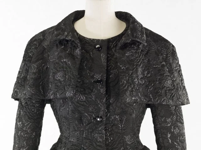 Cristóbal Balenciaga, ensemble van jurk en schoudermantel in gewatteerd façonné (detail), 1968, Palais Galliera © Julien Vidal_Galliera_Roger-Viollet