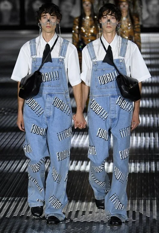 De show met 68 tweelingen die hand-in-hand over de catwalk liepen, had een politieke lading; de hoop op solidariteit in het diep verdeelde Italië waar extreem rechts aan populariteit wint, wat gevolgen zou kunnen hebben voor onder andere LGBTQ-rechten.