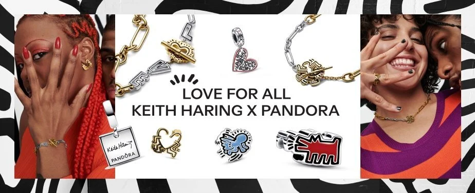 Tot op heden wordt Harings positieve werk wereldwijd geëxposeerd en verspreid via samenwerkingen. Voor Pandora is dit de eerste art collab. Geïnspireerd door zijn iconische kunst en zijn motto love for all heeft het Deense sieradenmerk Keith Harings unieke visie vertaalt in 12 artistieke en exclusieve juweeltjes: zes charms, twee armbanden, twee ringen, oorbellen en een ketting. Vanaf nu kan iedereen de kunstwerken van Keith Haring dragen.