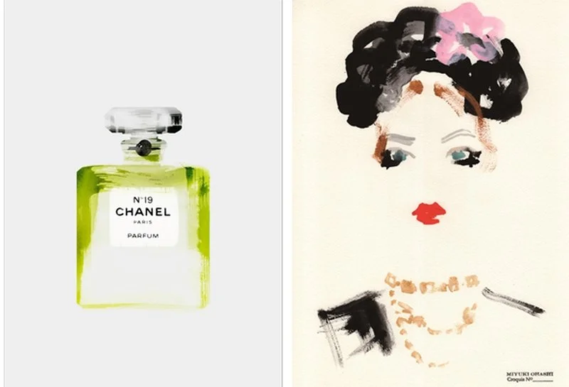Artistieker zijn de meer abstracte Chanel-impressies van de Franse Aurore de la Morinerie die uitblinken in eenvoud. Zoals de stijlvolle aquarel van het Chanel N°5 parfum op de cover van het mooi uitgegeven Chanel Illustrated. Prima keus.