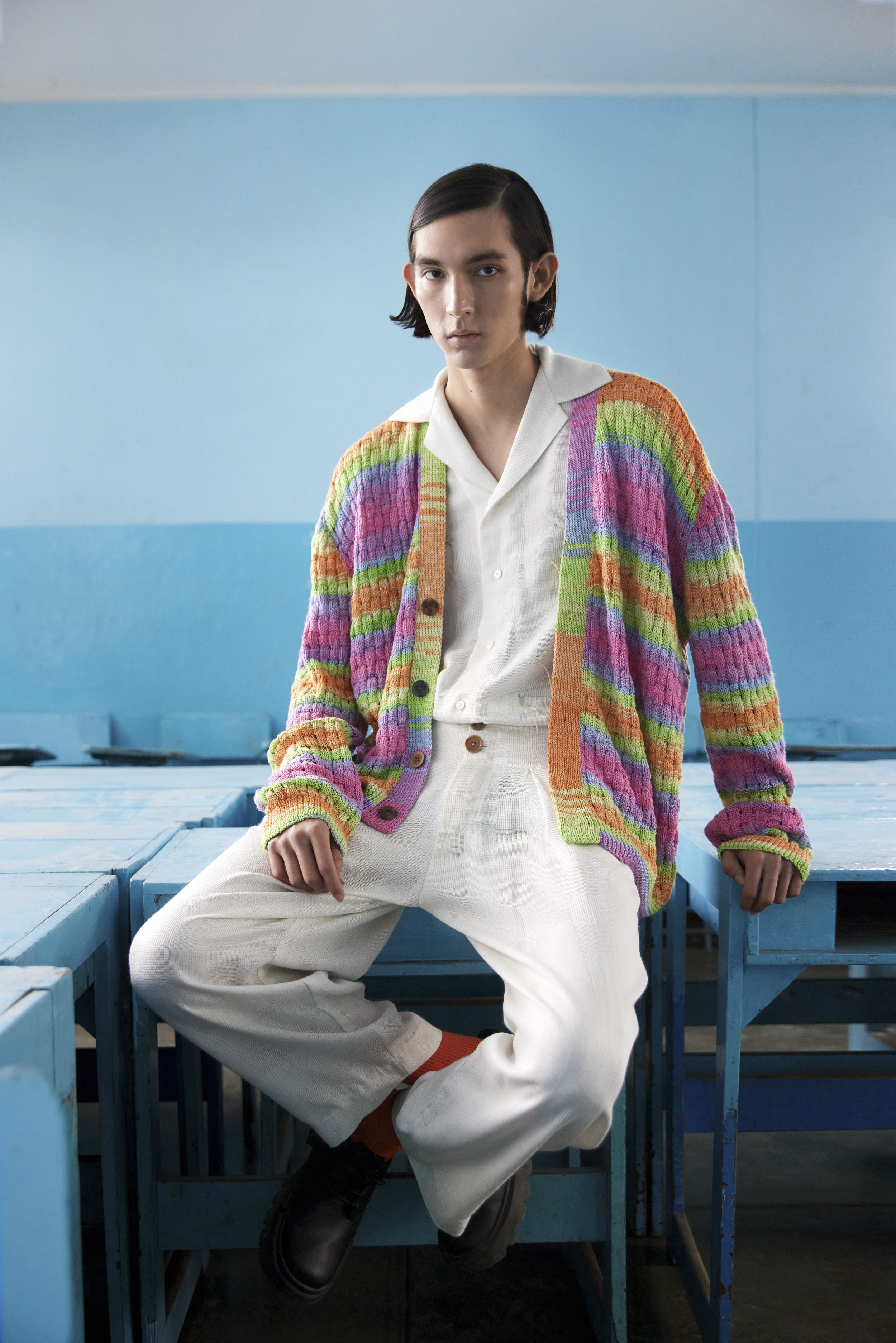 Paulo je begon D.N.I. met je tweelingbroer Roberto in 2019, vertel eens over jullie inspiratie? ‘Onze kindertijd vormt onze grootste inspiratiebron. Op ons dertiende verhuisden we met het gezin naar Parijs, maar Casa Grande, een klein stadje in het noorden van Peru, heeft ons gevormd. De grafische elementen in onze ontwerpen verwijzen naar die ervaringen. Daarnaast ontleent het merk zijn karakter aan vakmanschap, poëzie en populaire cultuur.’