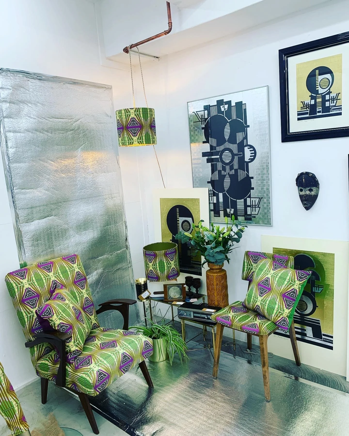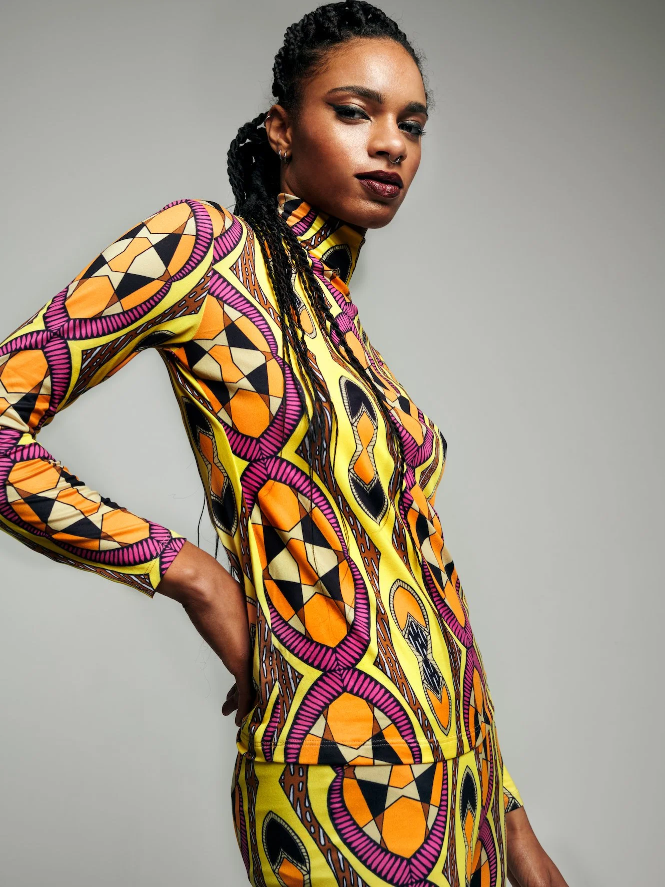 Er bestaan zoveel dessins, wat maakt die van jou onderscheidend? Vanwege mijn Afrikaanse roots zullen mijn dessins altijd een etnisch tintje hebben; zowel in vorm, symboliek als kleur. Maar ik hou heel veel van clashes, als stylist al. Ik voeg daarom graag verrassende elementen toe. Inspirerend vind ik: art deco, futurisme, natuur, optical art maar ook de Egyptische of Griekse oudheid.