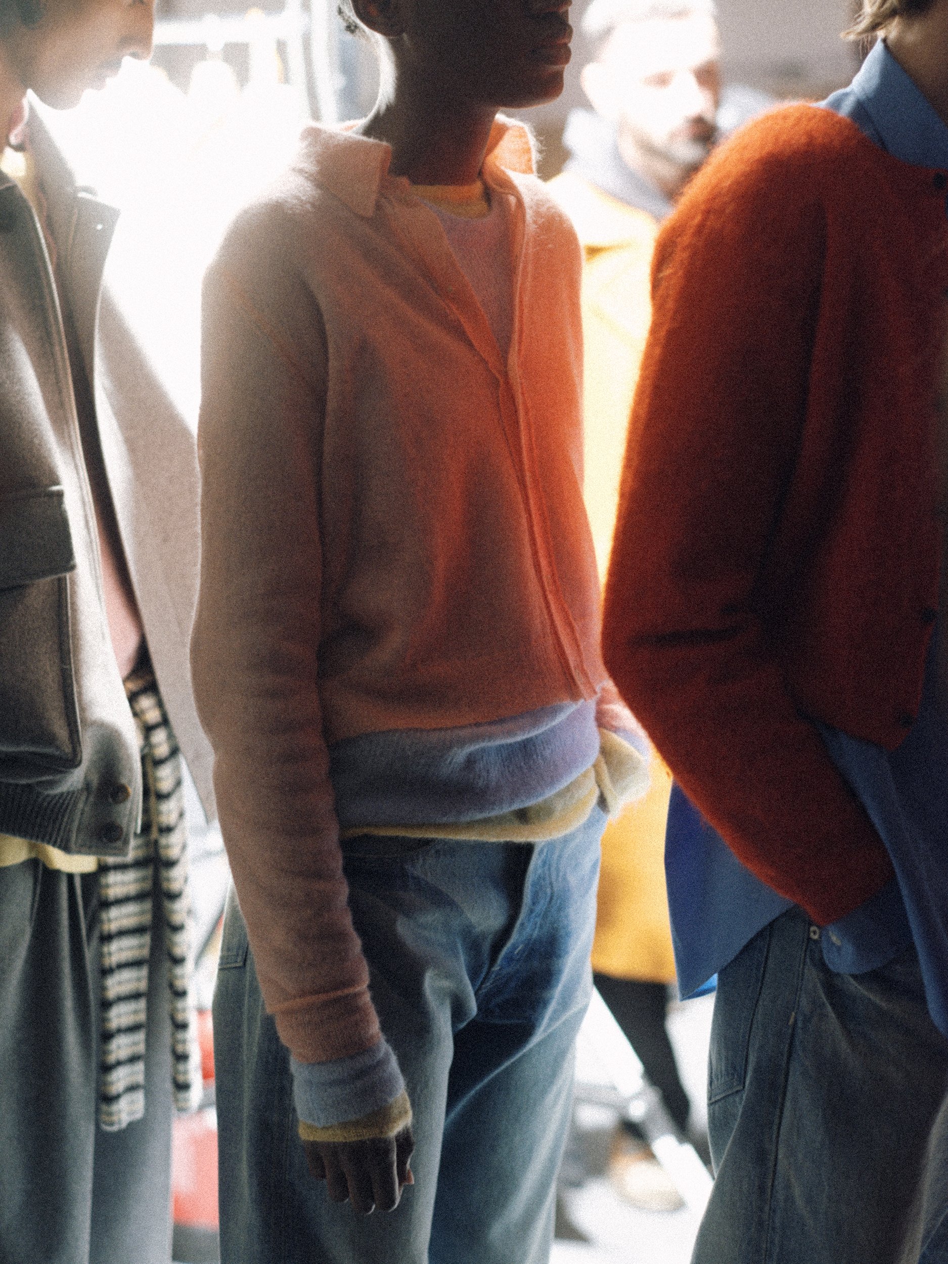 Ontwerper Ryota Iwai van het Japanse Auralee showt zijn ‘luxe normcore’ al enkele jaren tijdens de mannenmodeweek van Parijs. Hij laat zich inspireren ‘door het dagelijks leven’, zei hij backstage na zijn show in januari. Op zijn website gaat het over ‘calm elegance’ op één lijn met ‘gentle formality’ en ‘sensitive sophistication’. Een grijze hoodie, een fleecejas, een pak met das, een ribfluwelen pantalon (‘zo’n heerlijke, vrij strakke maar toch niet te nauwe, een heel beetje versleten zwarte corduroy broek’, schreef Gerard Reve) – er zit zelden iets tussen dat écht verrast, maar het is allemaal zo mooi gedaan en zo goed gemaakt dat je het onmiddellijk aan wilt. Een beetje zoals Hermès, maar dan jonger van geest. ‘Auralee betekent ‘het land dat oplicht’,’ aldus Iwai. ‘Ik beeld me altijd in dat mijn kleren gedragen worden in het ochtendlicht.’ auralee.jp