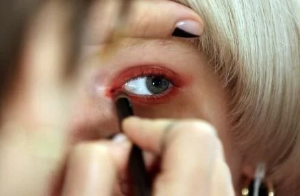 Pops of glossy rouge eyeshadow were paired with shiny berry lips, beehive hairdos and even cat eye glasses to amplify Anna Sui’s heady mash-up of folk, Western and Victorian influences – the ultimate Americana tribute.