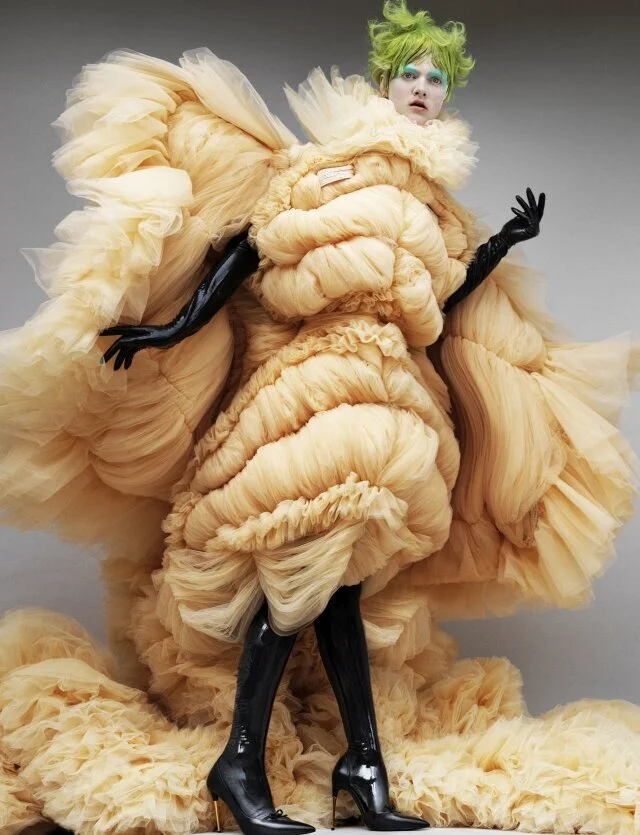 Jurk MOSCHINO.Oorhangers LIDIA COURTEILLE by LOUIS REICHMAN JEWELRY. Panty FALKE