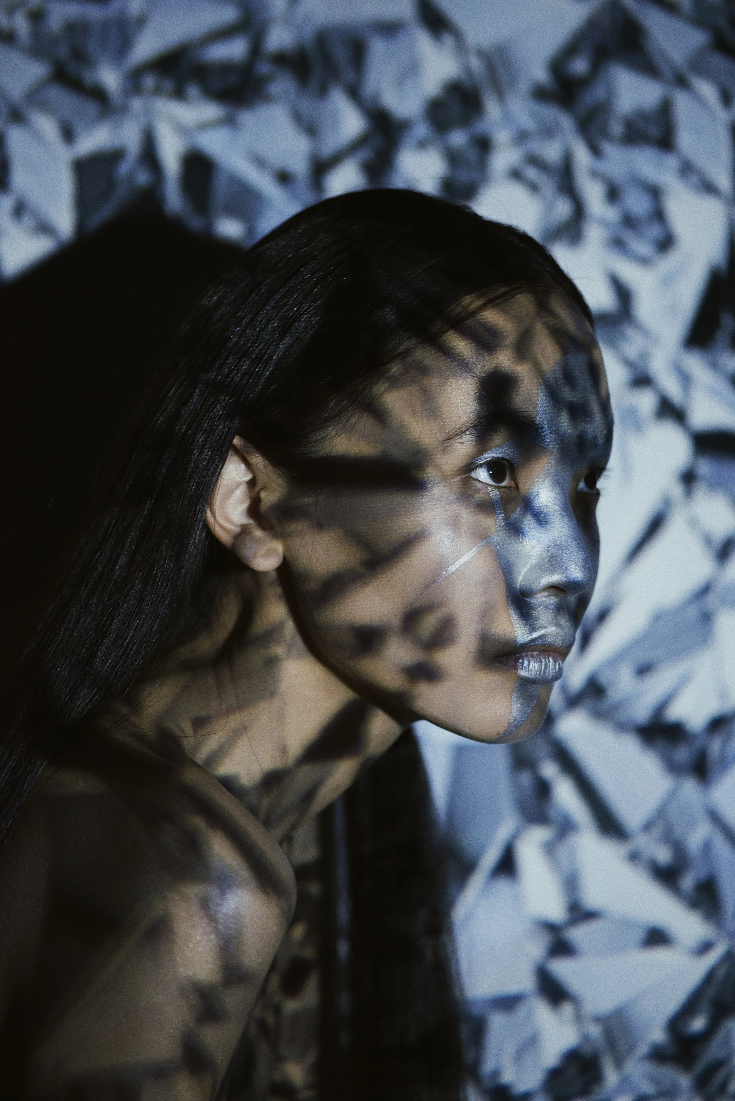 Wat was het concept voor de video? “We zagen al vaker mode- of kunstconcepten met projectoren als medium voor expressie. Maar we hadden nog nooit make-up zien samenvloeien met geprojecteerde beelden. We hebben ons concept gebaseerd aan de hand van zoekwoorden als ‘shapeshifting’, ‘chameleon’, en ‘blend in to stand out’.