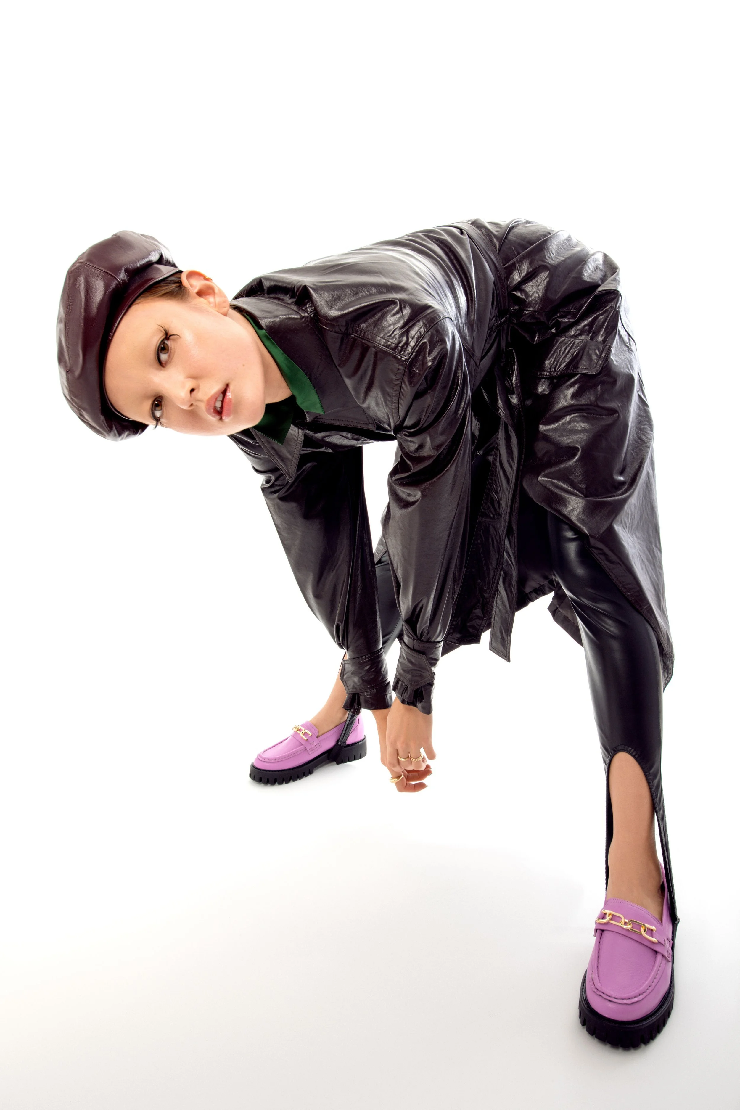 Purple shoes Legging Missy Empire Blouse Zara Coat Asos Design Shoes Asra Barret Asos Design Rings stylist own