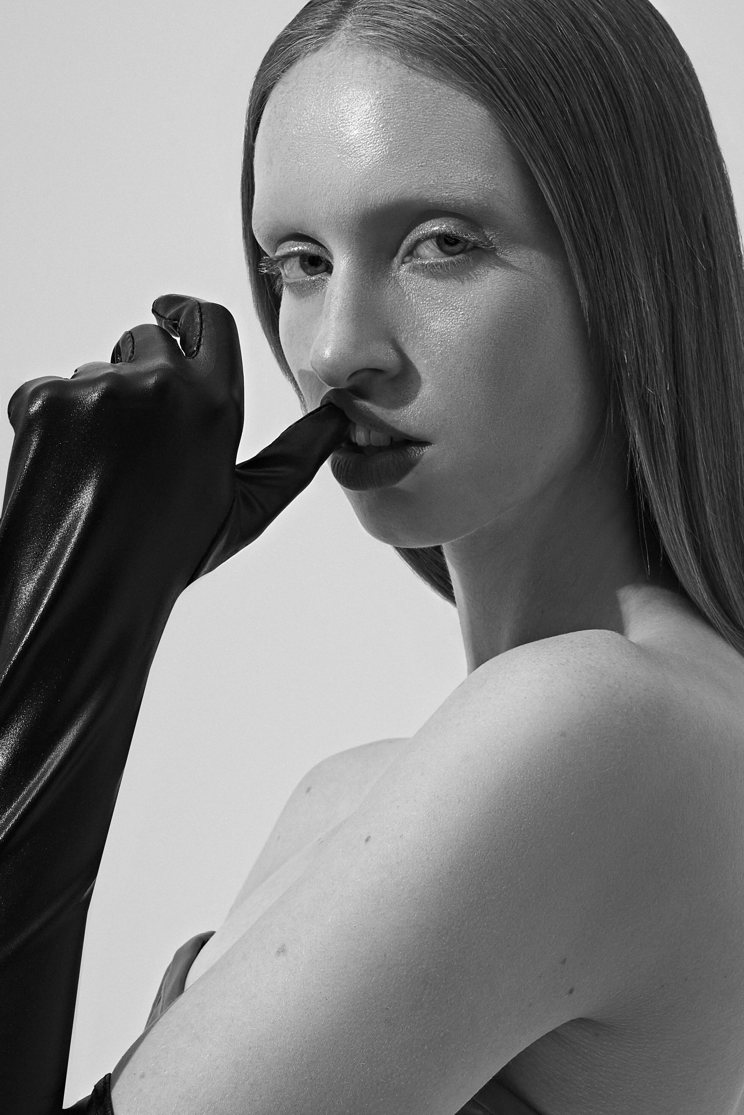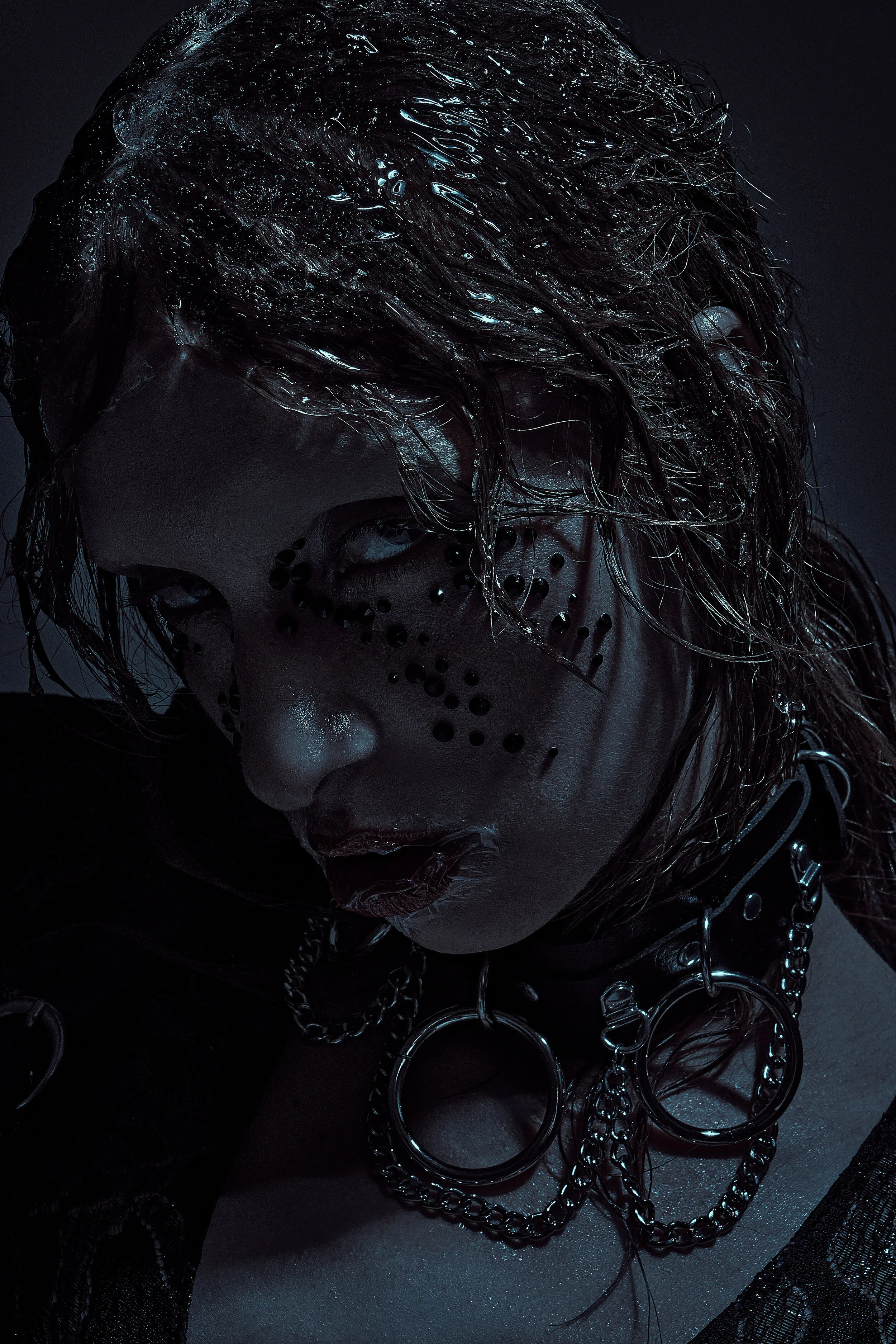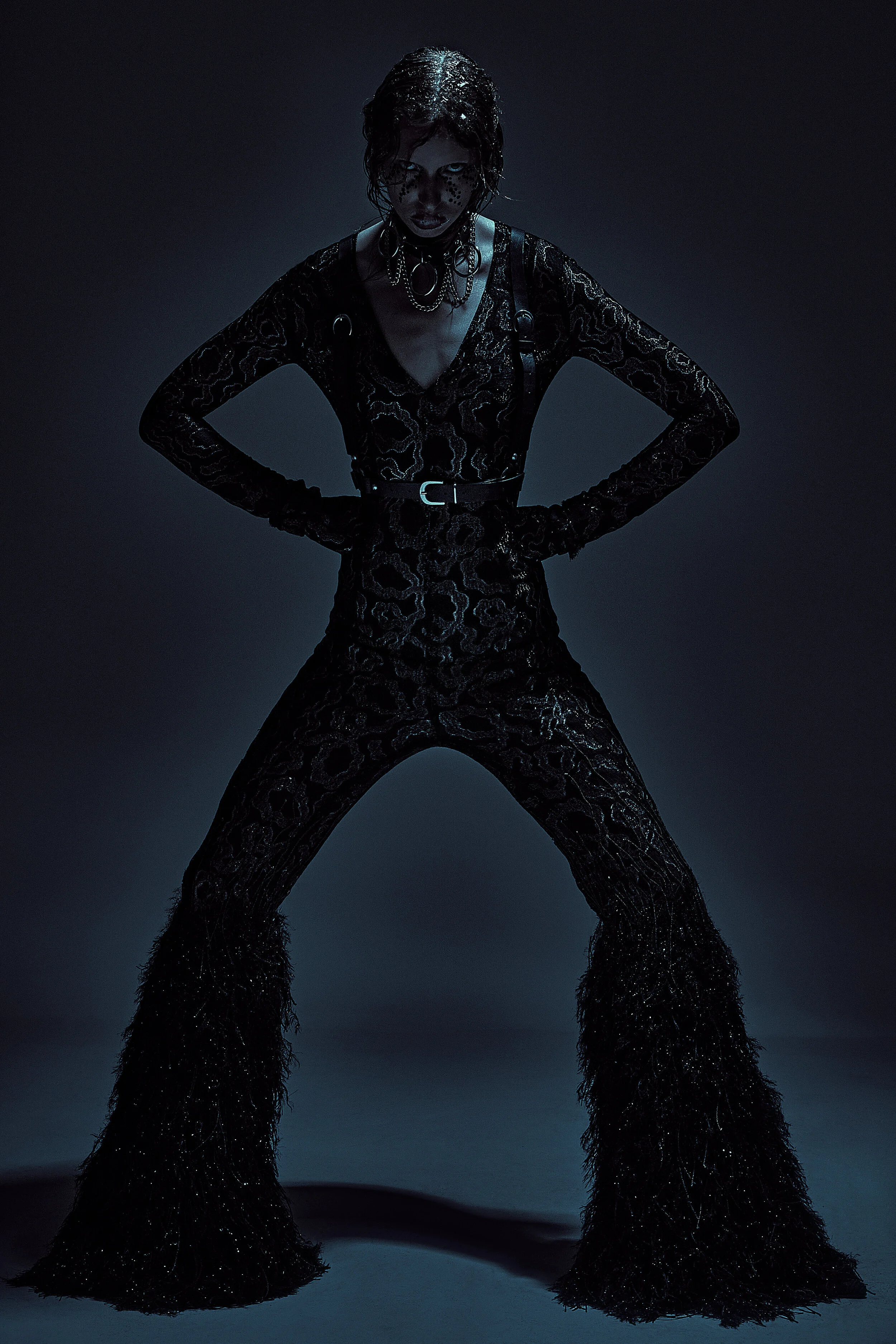 Lace suit: Areen Bosheh. Harness: Stylist’s own. Choker: Stylist’s own