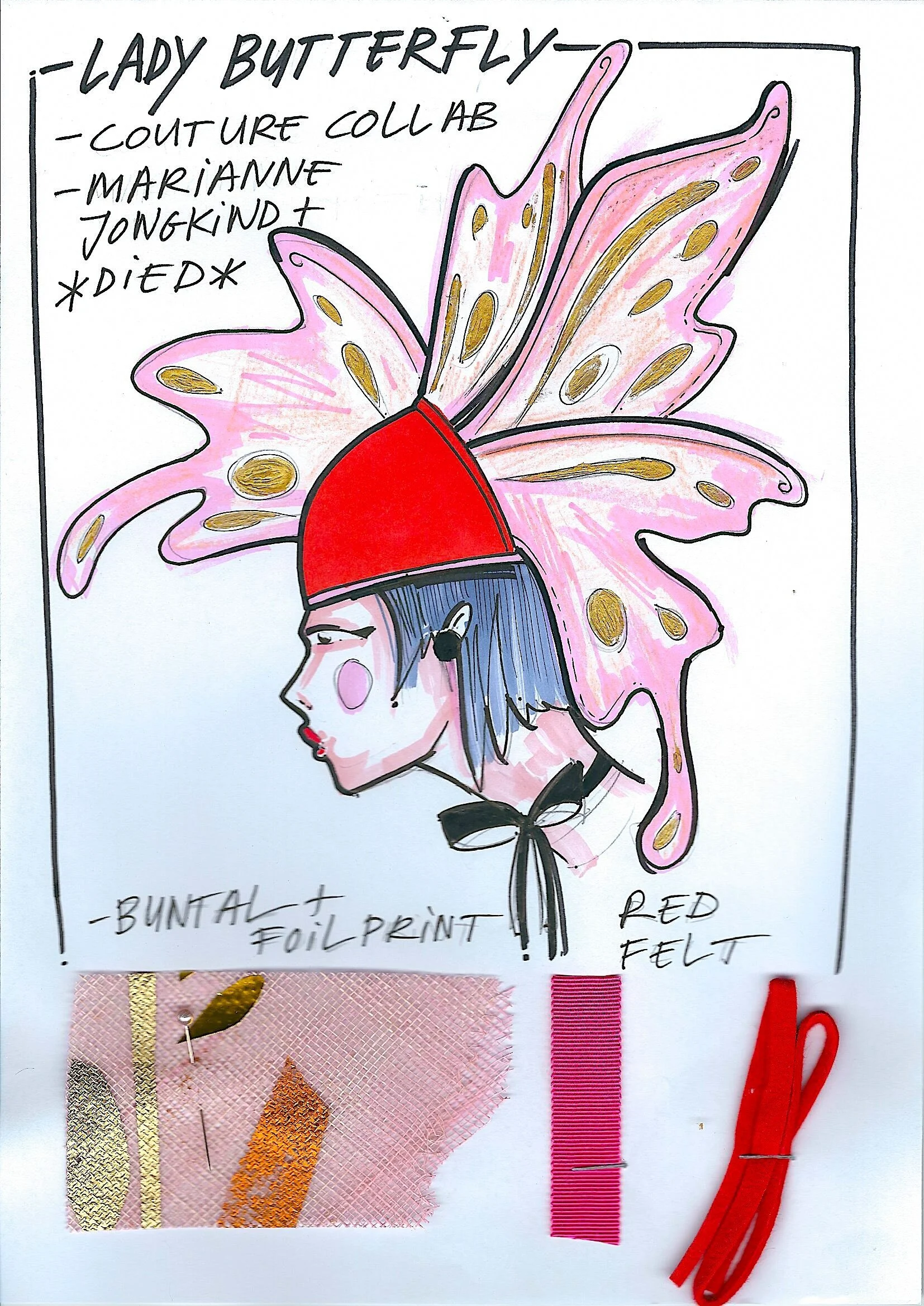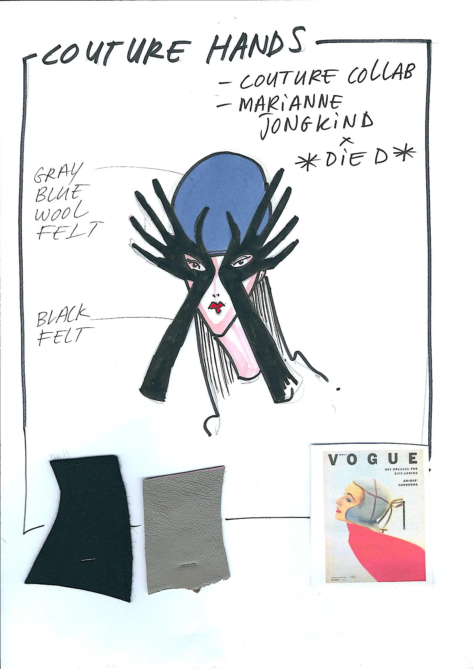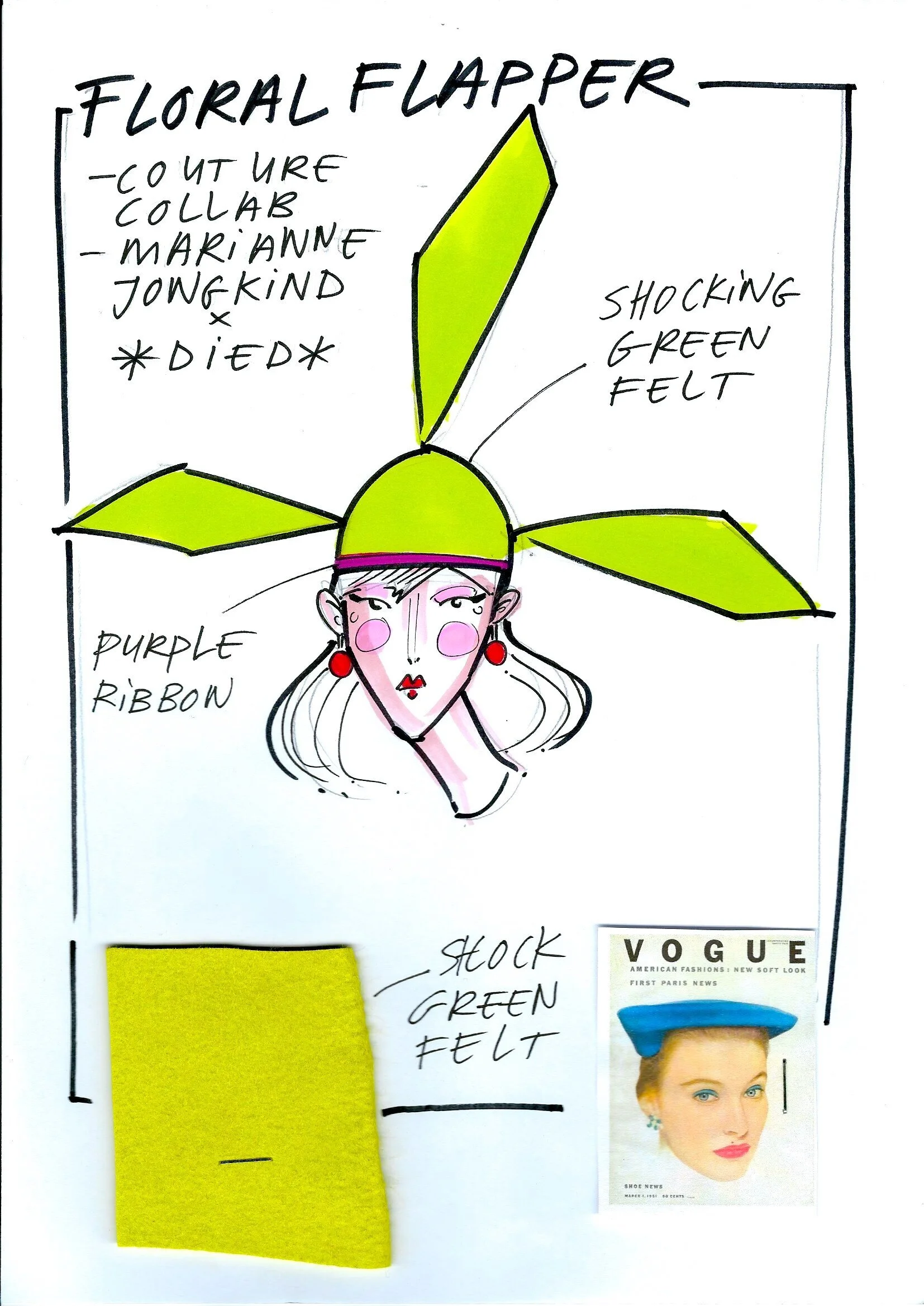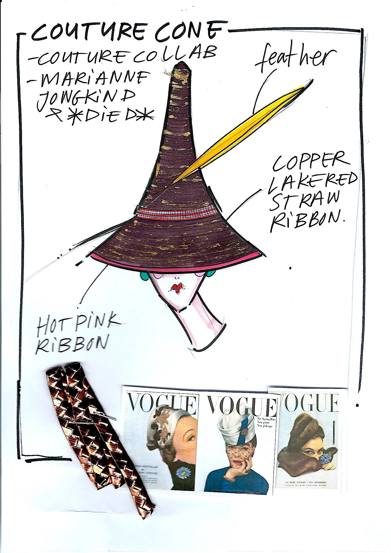 Grande Dame van de couture hoeden Marianne Jongkind en kunstenaar Diederik Verbakel ontdekten elkaar 4 jaar geleden op Instagram. De insta hartjes en likes vlogen meteen heen en weer. Hierop trok Diederik de stoute schoenen aan en vroeg of Marianne het leuk zou vinden om een ‘couture hoeden’ samenwerking te doen. Met als reden het ambacht van couture hoeden maken op een creatieve manier onder de aandacht te brengen.