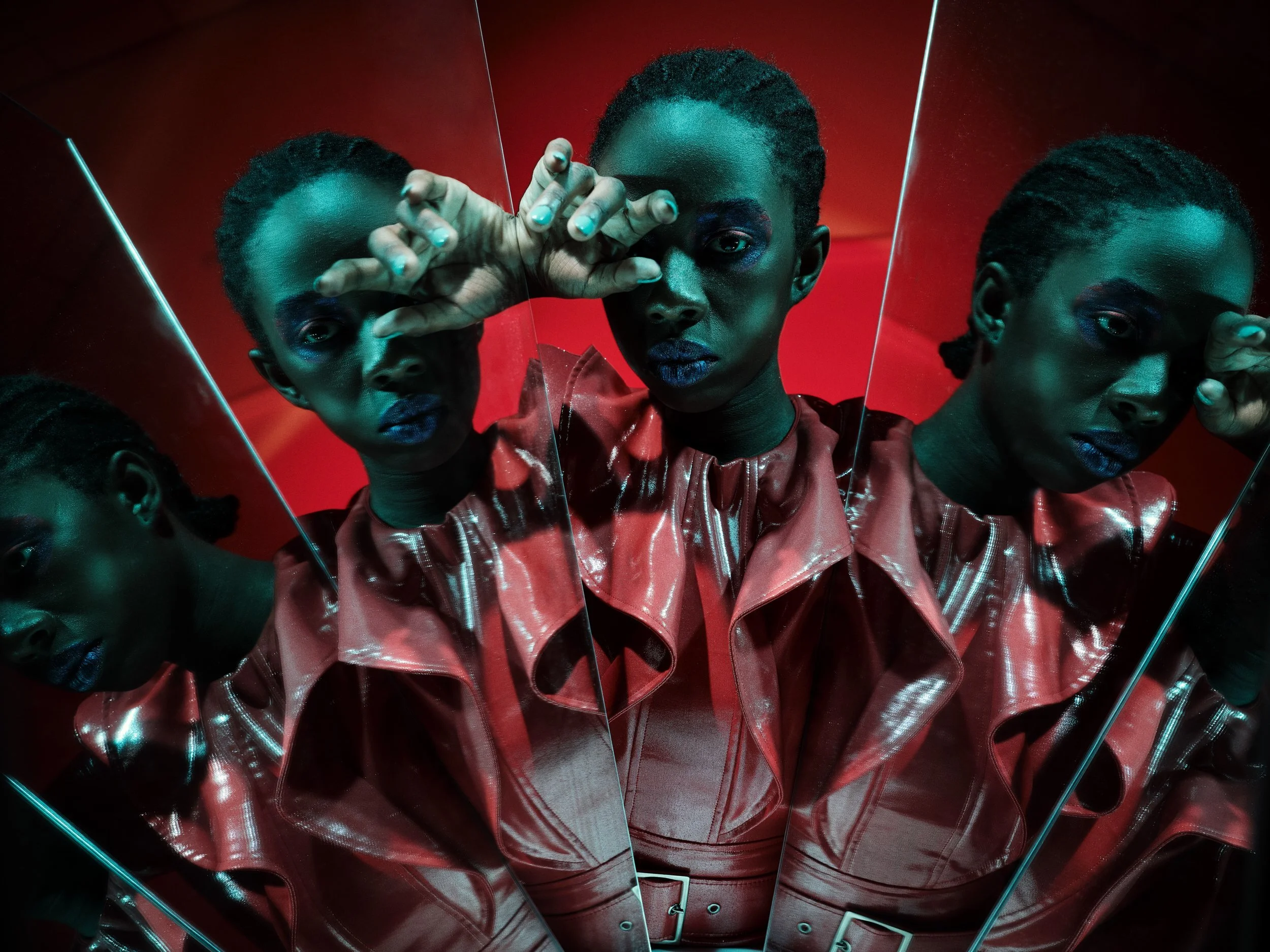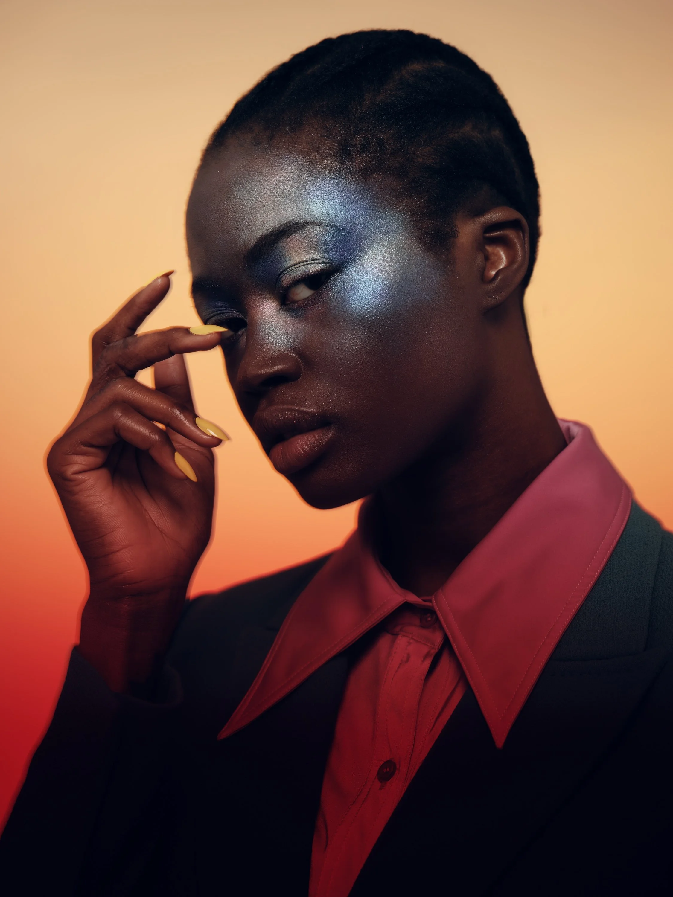 Jacket: A. Teodoro Shirt: Romeo Gigli. Make-up: Dior Prestige La micro-huile de rose advanced serum, Gucci Beauty Fluide de Beauté Foundation, Pat McGrath Labs Sublime Skin Highlighting Trio, Pat McGrath Labs Mothership IV Eyeshadows, YSL The shock volumizing mascara, Nails Opi nla 65 I just can't cope-acabana