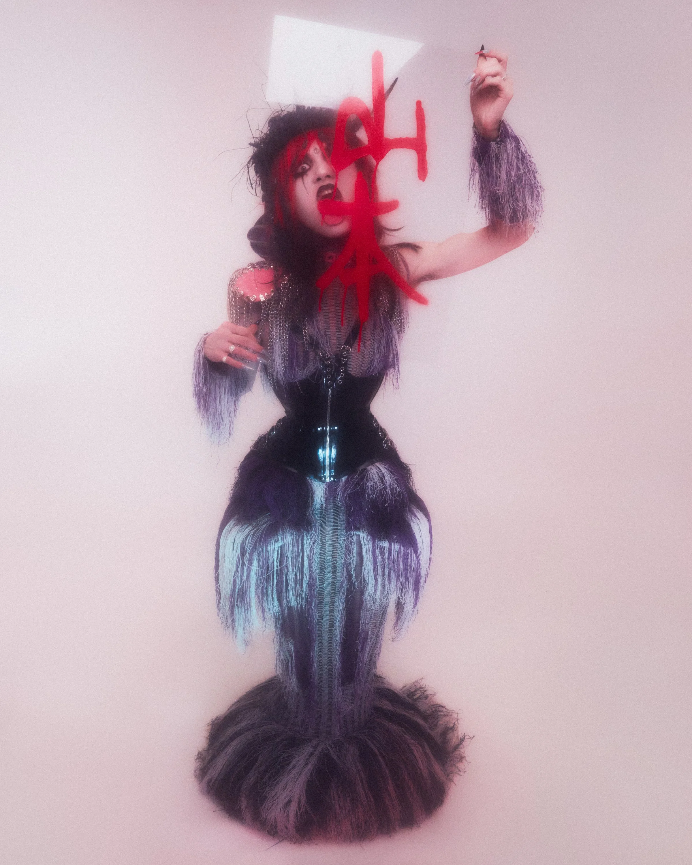 VISUAL KEI Photographer & Creative Director - Luke Nugent @lukenugentstudio Makeup Artist - Callista Thomas @callistalorian Makeup Assistant - Lara Weidman @bylaraweidmann Hair Stylist - Alex Sarghe @alexsarghe Nail Artist - Kezia Parkins @nailoccultist Stylist - Kay Altamira @kayaltamira Styling Assistant 1 - Sheila Mendes @sheimende Styling Assistant 2 - Sadie Davies - @sadie_davies Set Design - Luke Nugent @lukenugentstudio & Kay Altamira @kayaltamira Text/Story - Kazuma Hashimoto @justicekazzy