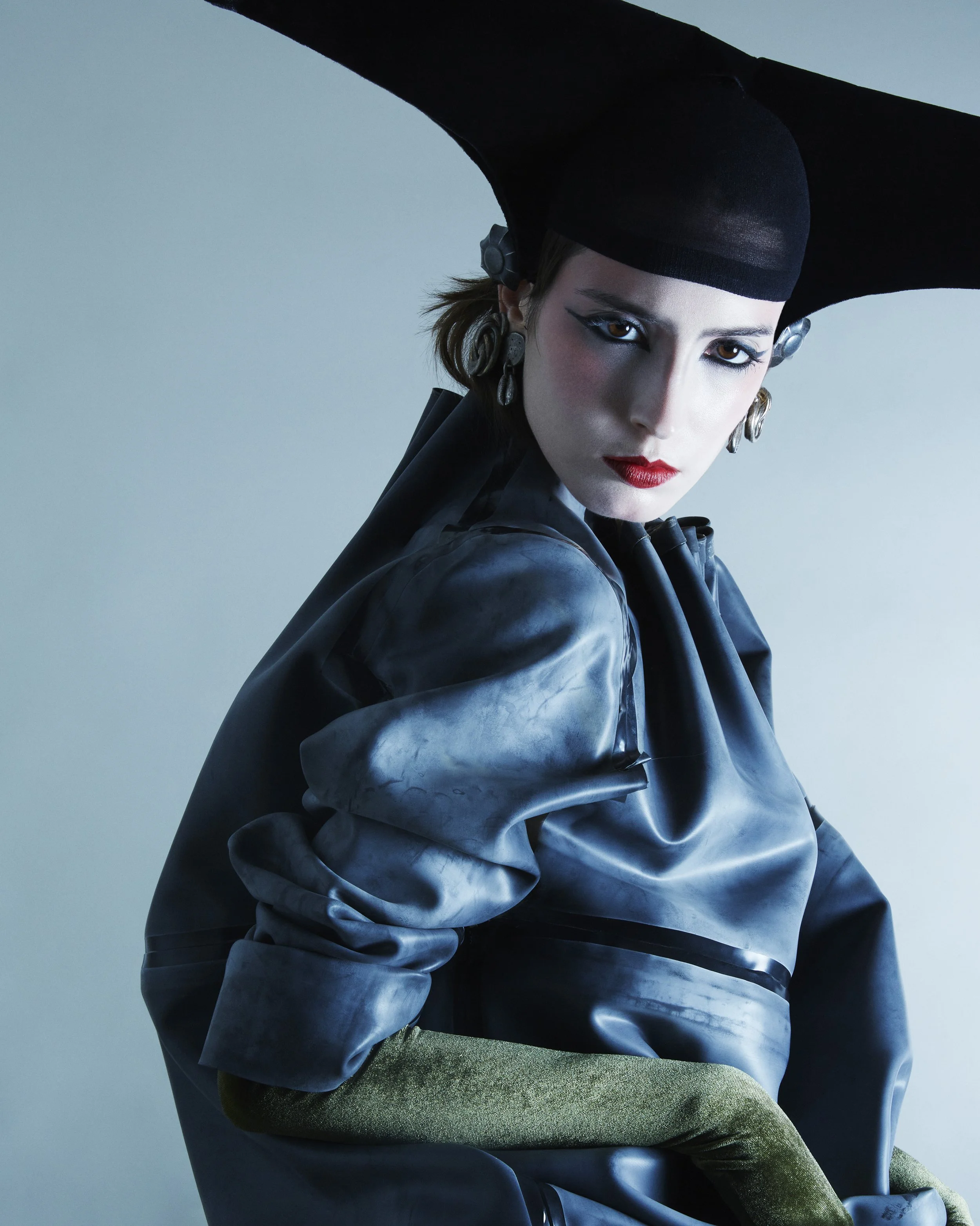 Latex top: Brice Loubet, hat: Anselin Louis, gloves: C’est Jeanne & vintage jewellery.