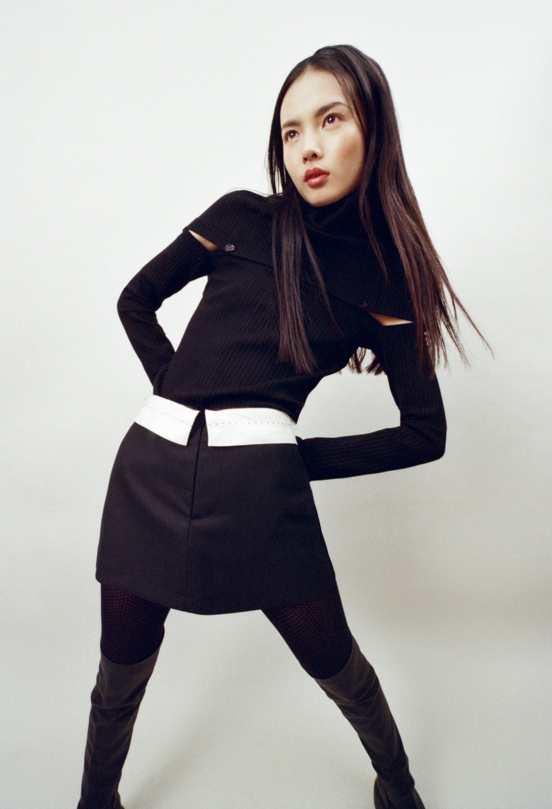 Jacket – Comme des Garcons/Skirt – Chloe/Headpiece – Stylist’s Own