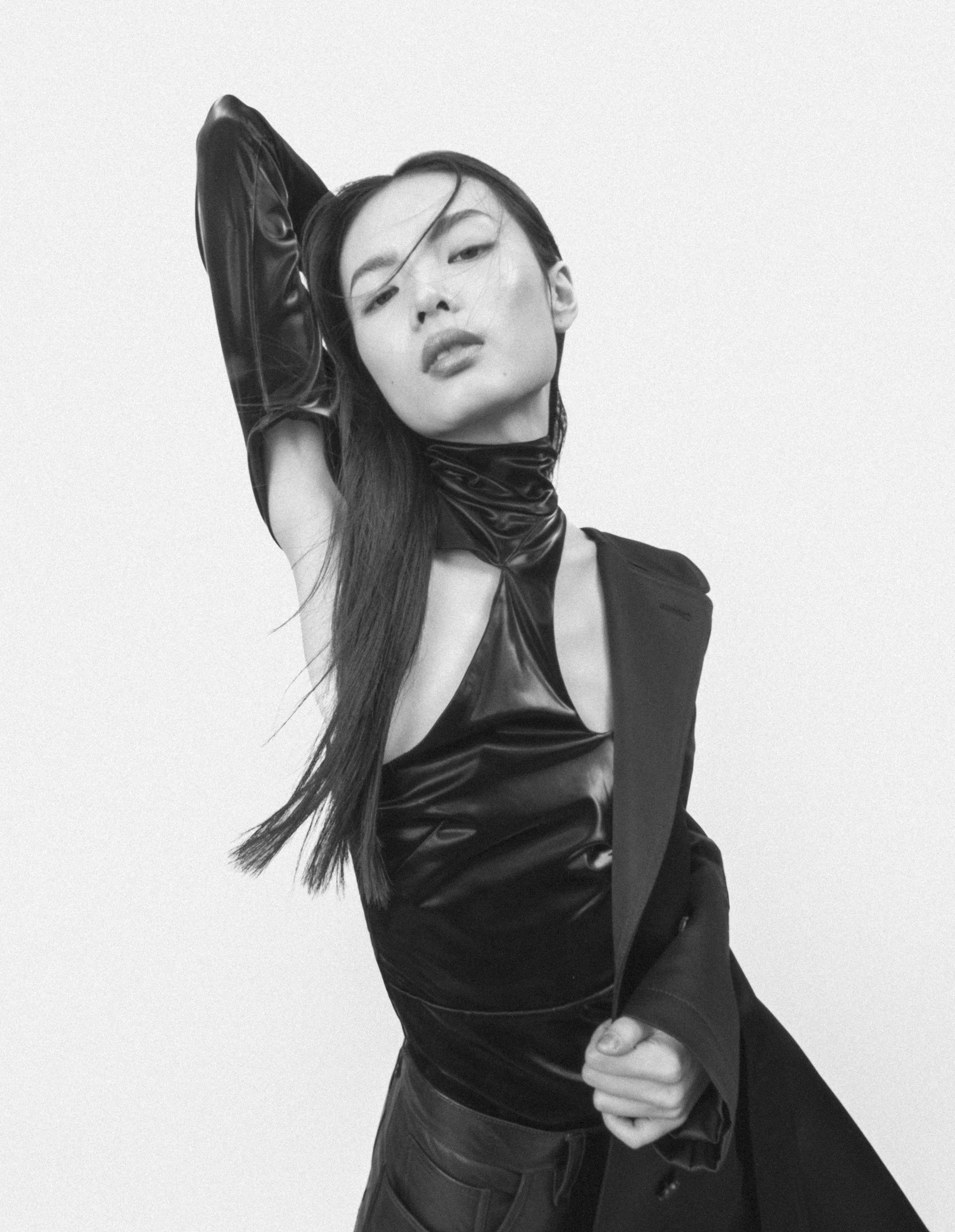 Fire – Sasha Krivosheya – Elite - @sashakrvsh/Skirt – Joseph Top – Saint Laurent Jacket – Vintage Headpiece – Stylist’s Own